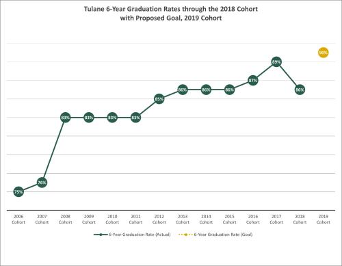 Tulane 6-Year Graduation Rates through 2018 Cohort with Proposed Goal, 2019 Cohort